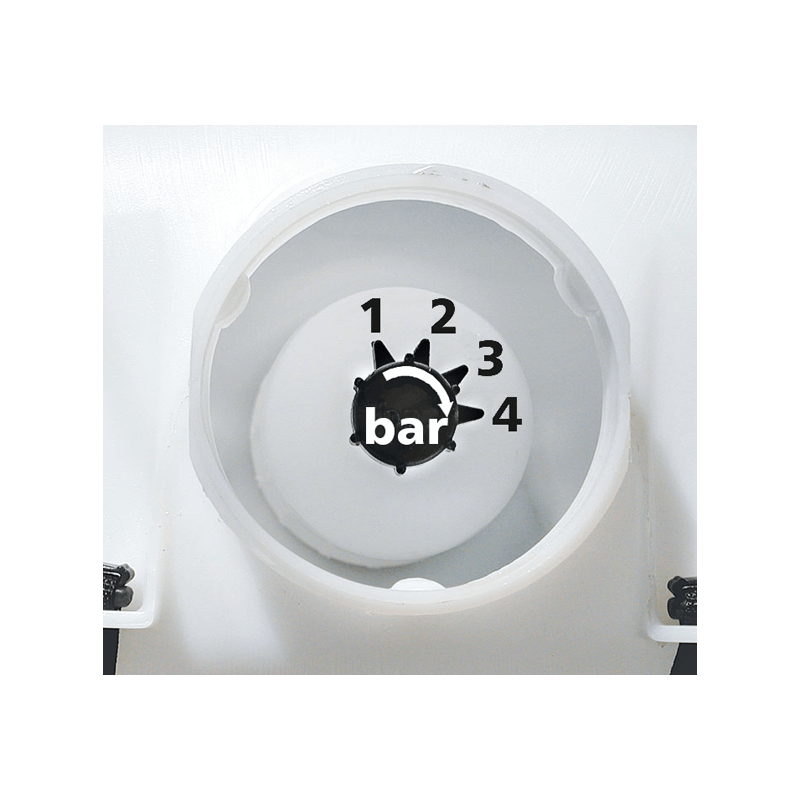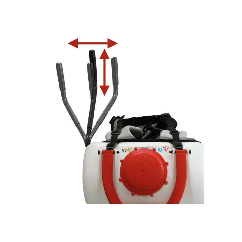 Podręczna pompa ciśnieniowa. Kilka ruchów wystarczy na wytworzenie ciśnienia oprysku dalekiego zasięgu. Umiejscowienie dźwigni pompy tuz przy biodrze operatora zapobiega przerywaniu pracy i pozwala na utrzymanie jednolitego ciśnienia oprysku.